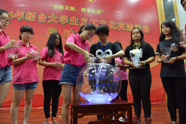 “血脉文脉·携手志愿”——绍台大学生义工文化交流活动列入国台办重点交流项目。7月初,50名越秀大学生义工和台湾南台科技大学、树德科技大学、岭东科技大学、文藻外语大学、中央大学5所高校的50名大学生志工组队深入绍兴的社区、学校、医院、街道开展志愿服务活动;同时新葡京官网两批学生先后赴台湾高校开展义工活动,真正做到了两岸高校大学生义工文化活动的双向交流。