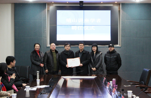 当天上午10:00,聘任仪式在镜湖校区一楼会议室举行,副校长朱文斌为