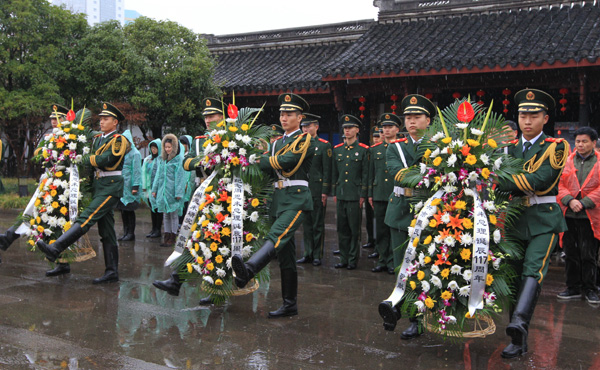图为新葡京官网师生在周恩来祖居参加缅怀周总理活动