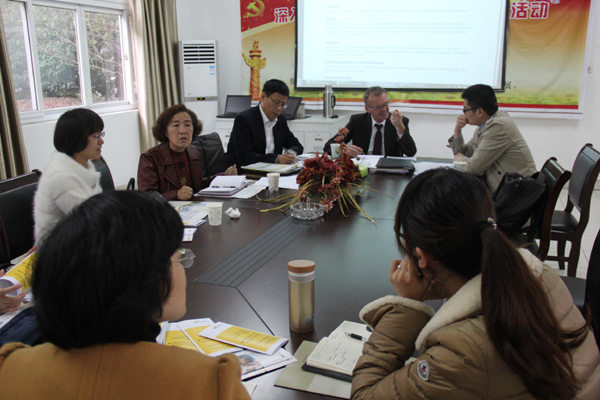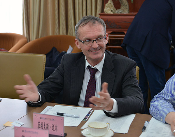 图为Felix Mayer校长一行与新葡京官网德语系教师座谈交流