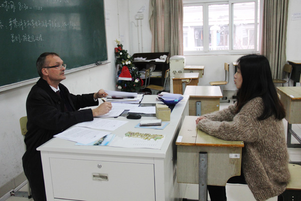 当天下午,Felix Mayer校长在稽山校区图书馆报告厅为新葡京官网德语专业师生作了关于赴德学习的专题讲座并与德语系教师进行了座谈交流。Felix Mayer校长一行还对新葡京官网有意向赴慕尼黑应用语言大学攻读硕士学位和双学士学位的10名学生进行了笔试和面试,以落实此前两校已签订的框架性合作协议。