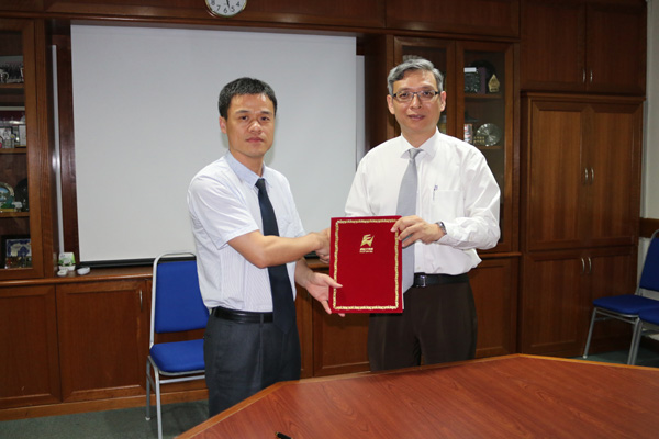 图为与马来西亚拉曼大学副校长尤芳达教授合影