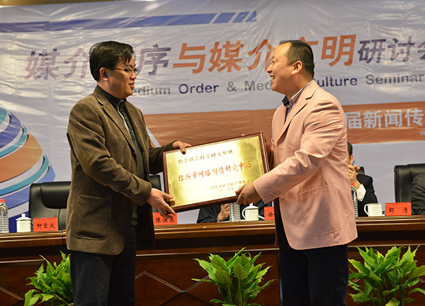 开幕式上还举行了绍兴市哲学社会科学重点研究基地授牌仪式,市社科联副主席、社科院院长柳巨波向网络传播学院党委书记、常务副院长何海翔授牌。