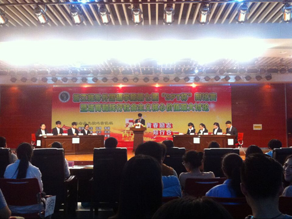 决赛双方以“培育和践行社会主义核心价值观”为主题展开激烈辩论