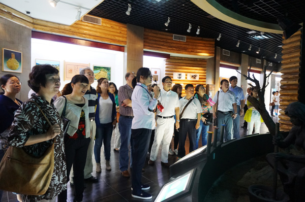 图为与会专家参观绍兴黄酒博物馆