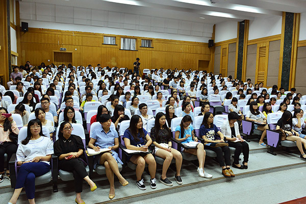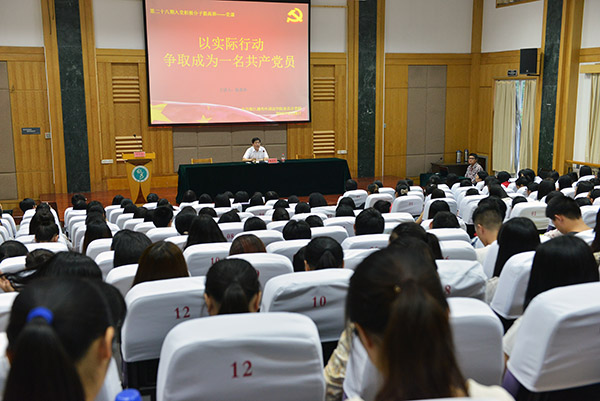 学校党委副书记施文妹主持报告,稽山校区260余名党校学员和20余名辅导员聆听报告。