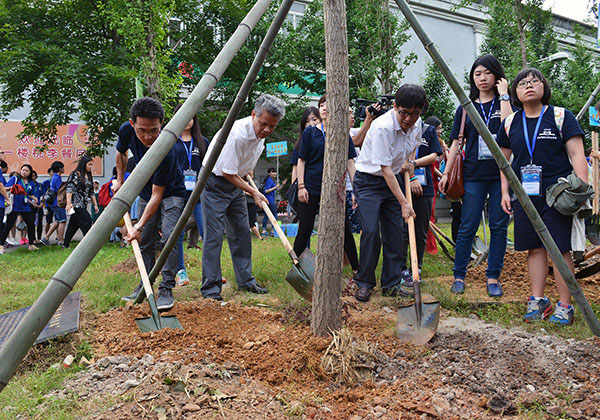为了保留绍台大学生这份珍贵的情谊,新葡京官网于2014年在校园内开辟了“绍台大学生友谊林”。启动仪式后,与会领导和学生代表为友谊林揭幕;两岸大学生用相互交融的两岸水、两岸土共同浇灌在友谊林种下的7颗新树苗,让这片根植在越秀校园的友谊林永远见证两岸大学之间的深厚情谊。
