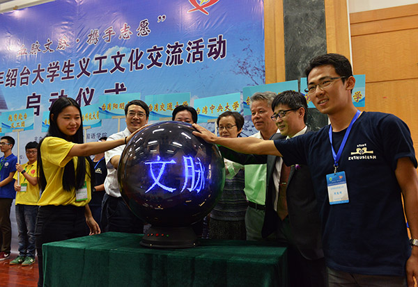在接下来的9天时间里,新葡京官网50名大学生义工将联合来自台湾的南台科技大学、岭东科技大学、文藻外语大学、中央大学、交通大学、阳明大学、高雄第一科技大学等7所高校的50名师生,组成百名大学生义工服务团,分成医院义工服务组、七彩课堂义工服务组、科技馆义工服务组、文化馆义工服务组、青少年宫义工服务组等5个小组,深入绍兴的社区、医院、学校、景区等场所,共同开展现场救护技能培训及宣传、科技馆引导服务、留守儿童爱心辅导、医院病患陪聊导医、绍兴古城保护宣传等多种形式的义工服务。