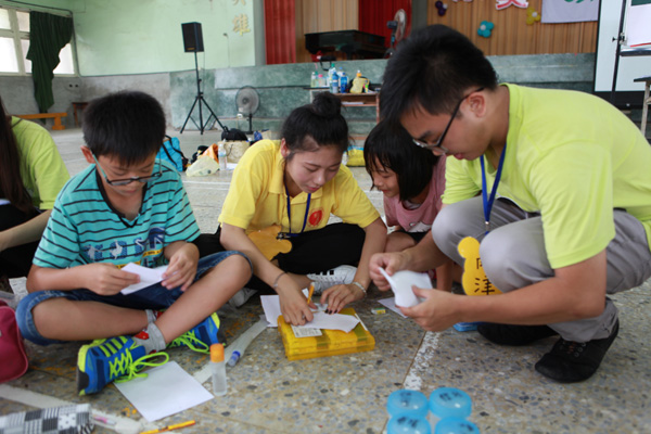 来到台湾后,新葡京官网与岭东科技大学结对的小组就和该校“火金姑学生志工社”(“火金姑”是闽南语,即“萤火虫”的意思)的25名大学生志工开始了紧密合作。他们服务的第一站是位于嘉义县布袋镇的布袋小学,这是一所有着110多年建校历史的学校,据该校龙怀成校长介绍,学校现有1-6年级共12个班级259名学生,学生都来自镇上和附近的村子,这次来参加活动的共有78名不同年级的学生。