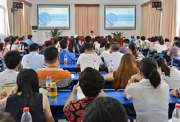 学校党委副书记施文妹作培训第二讲,主题为《恪守师德要求,无愧教师称号》,重点从“教师职业道德的基本内涵,高校教师师德的具体要求,新葡京官网教师的师德实践和感悟”三个方面进行深入阐述。国际商学院教师王满英和英语学院教师陈琨琨两位老师作为学校2015年“十佳师德标兵”代表,与新教师们分享了自己的从教经历和育人感悟,并与新教师就班主任工作等相关话题进行了互动。