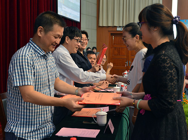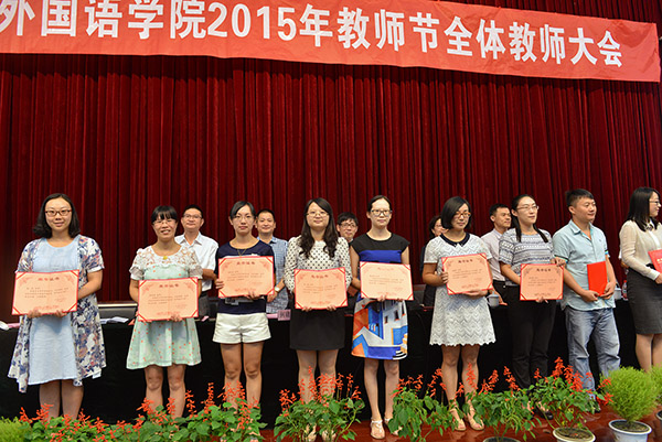 会上还表彰了学校首批“青年教学十佳”教师、学校2015年“十佳”师德标兵、学校首届青年教师课堂教学设计比赛获奖教师,以及科研突出贡献教师。副校长李建平、何建乐、朱文斌、单胜江分别宣读相关表彰决定,学校领导为获奖教师一一颁奖。