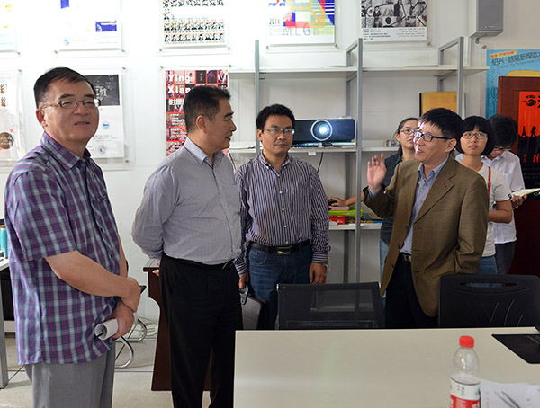朱鑫杰一行实地踏看了网络传播学院实验室、数字媒体艺术工作坊、新锐网络传播工作室等教学实践场所,随机听取了传播学1404班的《新闻评论》课程,并深入师生服务中心,走进学生寝室,详细了解同学们开学以来的学习生活情况。