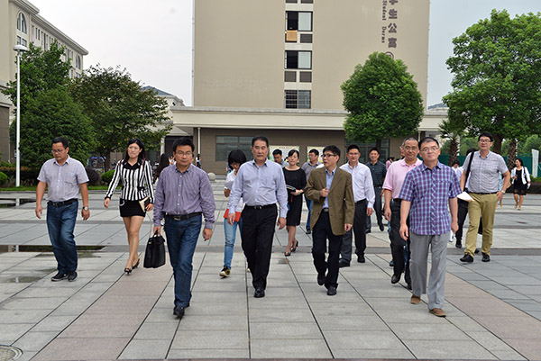图为朱鑫杰副厅长(左二)实地了解新葡京官网实践教学情况