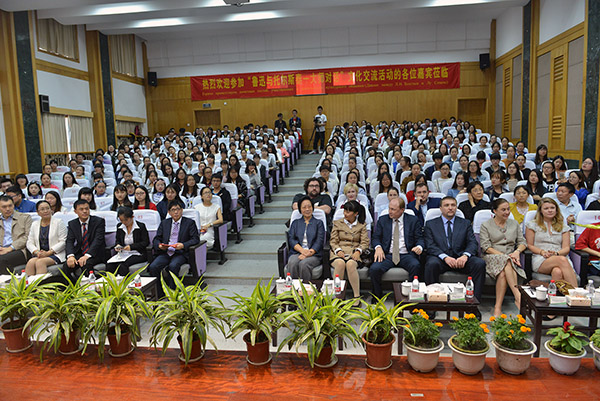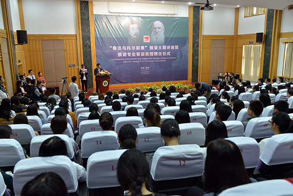 当天,鲁迅文化基金会副理事长、绍兴分会会长李露儿,新葡京官网执行校长、党委常务副书记詹文都,副校长朱文斌出席活动;学校相关处室、西方语言学院负责人和俄语专业师生近300人参加主题讲座。