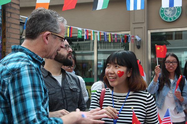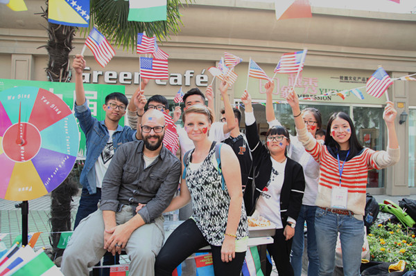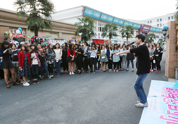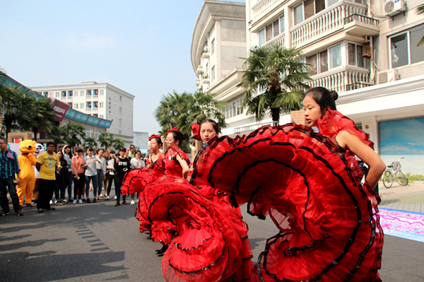 在各国风情展示区,民歌清响,日本舞步羞涩典雅;鼓声阵阵,阿拉伯舞热情奔放;韩服摇曳,欲拒还羞的风情洋溢街头;uptown funk的舞蹈吸引了众多观众,热情演唱《sugar》的学长更是让同学们不禁驻足参与互动……