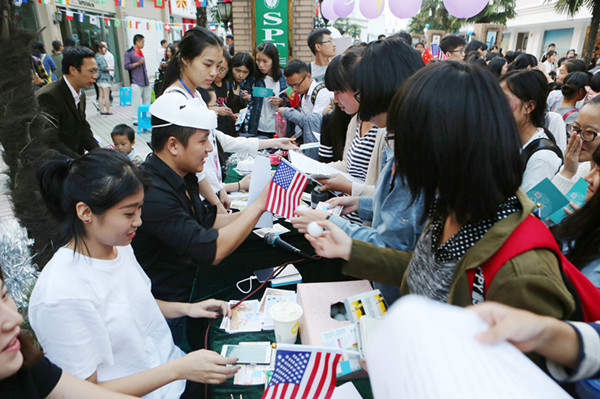 主办方在风情展上还为参与活动的学生们设计了“体验卡”,每位学生只要到多国文化馆完成事先设定的任务,就能获得相应国家的特色印章,而集满10个国家的印章后,便能领取一份纪念品。