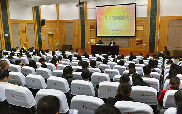 朱文斌在会上传达了党的十八届五中全会精神和绍兴市委会议精神,并对学校“十三五”规划的编制工作提出具体要求。他希望各学院、职能部门要广泛开展宣传动员,传达好、贯彻好此次会议精神,按照学校的统一部署和要求,坚持“走出去、请进来”相结合的方式,广泛征求意见,做好规划的调研和前期准备工作,加强规划编制的业务培训,统筹安排,群策群力,确保高质量、高标准完成好“十三五”规划的编制工作。