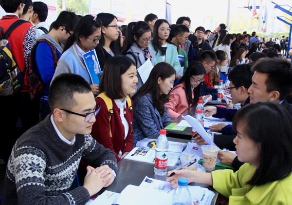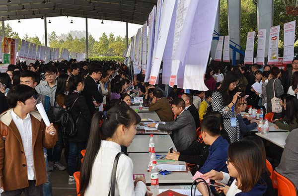 当天上午,新葡的京集团43212016届毕业生首场大型校园综合类招聘会在稽山校区举行。410余家单位为毕业生提供了8200多个岗位(比去年同期新增岗位近2000个),其中语言教育类和外经外贸类分别有1024个和3897个,超过岗位总数的60%。