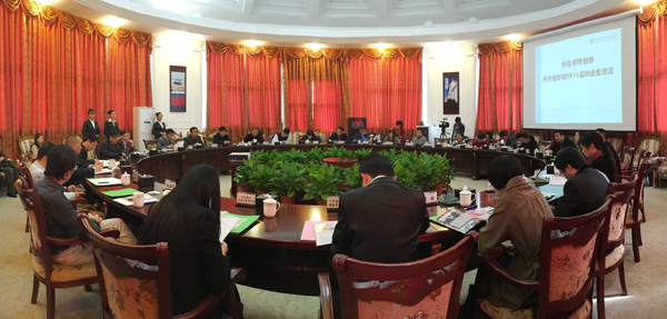 图为詹文都(右)向与会的人才管理中心负责人授牌