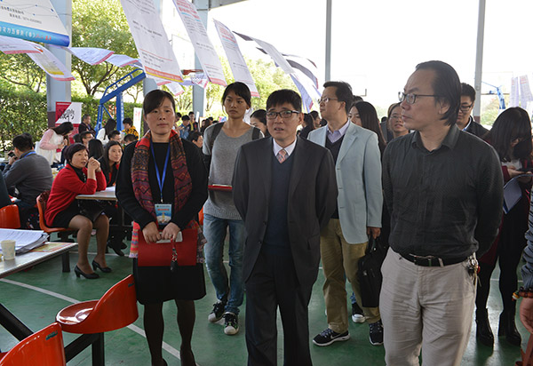 图为学校领导和人才市场负责人到现场了解招聘会情况