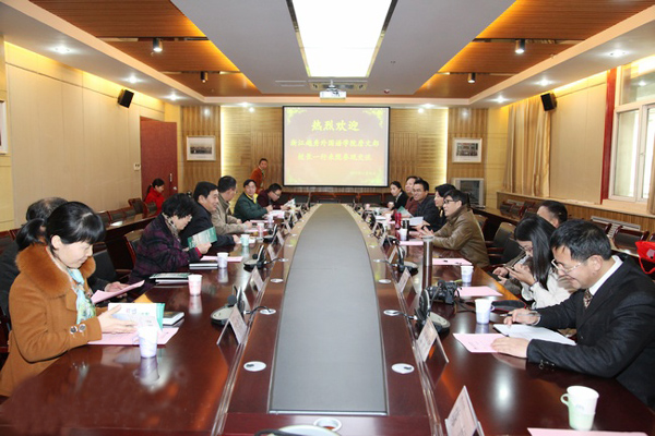 11月26日上午,在西安翻译学院,该校党委书记张锋,校办、教务处、教学质量督导办公室、科研处、人事处、国际关系学院、人文学院等相关部门负责人热情接待了詹文都一行,并召开了交流座谈会。与会人员观看了西安翻译学院发展的视频短片,双方简要介绍学校发展情况后,各对口部门进行了一对一的工作交流,就信息化校园规划与建设、师资队伍建设、教学质量建设等方面进行深入探讨。詹文都一行还参观了该校的校史馆、图书馆、科技楼及整体校园,加深了对西安翻译学院发展历史的了解。