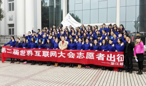 “我志愿服务第二届世界互联网大会,弘扬志愿者精神,积极进取,热情服务!”当天下午1点左右,“越秀”95名大学生志愿者身着特别设计的中式服装,举起右手,庄严宣誓志愿服务第二届世界互联网大会,为绍兴代言,让志愿者的微笑成为乌镇最好的名片。
