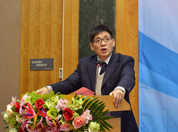 徐左平在会上宣读《关于表彰2014-2015学年新葡的京集团4321张巨昌奖学金获得者的决定》文件。