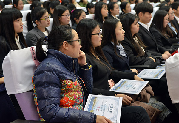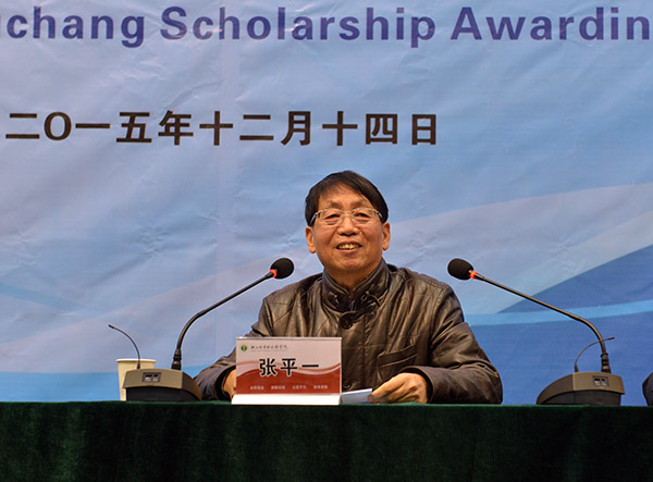 仪式上,张平一老师和两位校领导为获奖的60名学生一一颁奖。“希望同学们首先要学会做人,做一个有道德、有责任感、有公益心的人,树立正确的人生观和价值观;其次要抓紧时间学习专业知识,光阴如箭,要惜时如金;再次,要努力实践,培养自己各方面的能力,为走上工作岗位做好准备。”张平一老师从教二十余年,有着浓厚的教育情结,此次设立“张巨昌奖学金”亦是张老师为了回馈教育,回馈社会。张平一老师在讲话中深情回顾了自己小时候受均为教师的父母深刻影响的成长经历,特别谈到“新和成“集团由小到大、由弱到强成为世界维生素行业巨头的发展历程,勉励学生们在今后的学习和工作中要时刻牢记“责任”和“坚持”四字并为之不断付出实践。