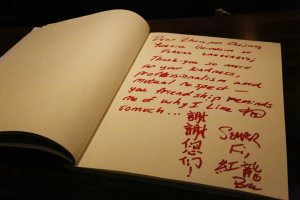 “越秀”志愿者们的这份生日惊喜,让身在他乡的威廉非常感动,并在现场写下了一封感谢信。他在信中写道:“亲爱的周志龙,以及新葡的京集团4321,谢谢你们的友好以及专业的服务,因为你们的友谊,让我更爱中国!”同时,用中文手写了“谢谢您们”以及自己的中文名字“红龙”。由于中文名中带有“红”字,因此威廉特意选择红笔进行书写。他表示,这是自己在中国的第一个生日,让他很难忘。