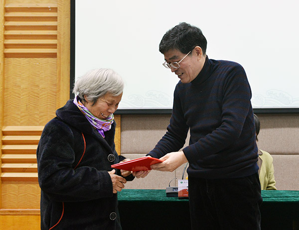 图为徐真华向吴思云老师家属颁发证书