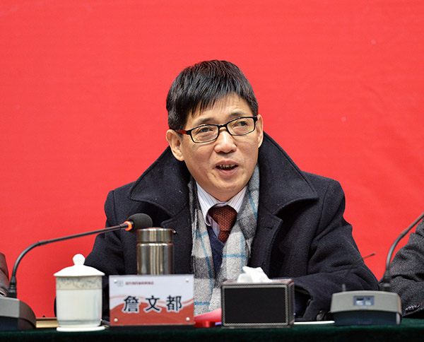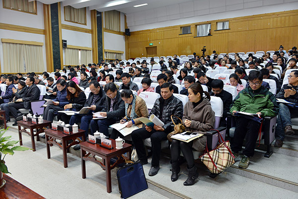 校领导詹文都、张永波、李建平、何建乐、徐左平、单胜江、施文妹、娄华水、朱小农,以及各学院、处室相关负责人与会。