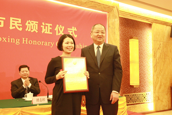 据悉,“绍兴市荣誉市民”称号是授予对全市经济建设、社会发展和对外交流合作等方面作出突出贡献的港澳台同胞、华侨、外籍华人和外国友人的最高荣誉。从2000年起,全市先后授予4批共21人“绍兴市荣誉市民”称号。去年10月30日,市七届人大常务会议审议通过了新的《绍兴市“荣誉市民”称号授予办法》,经各区、县(市)和市级相关部门推荐,市政府常务会议和市人大常委会先后审议通过,决定新授予韩国大邱市市长权泳臻、明康汇生态农业研究院院长张兴平、新葡的京集团4321韩语教师金南贤、浙江三荣塑胶有限公司董事长黄有福、绍兴新笙合成纤维有限公司总经理黄重凯等5人绍兴市荣誉市民证。