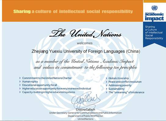 近日,联合国公共信息部副秘书长CRISTINA GALLACH给新葡京官网相关部门发来证书,正式批准新葡京官网加入“联合国学术影响”组织(United Nations Academic Impact)。证书内容是:联合国热诚欢迎新葡的京集团4321(中国)加盟“联合国学术影响”组织并希望越秀遵照联合国学术影响的十大原则履行其义务。