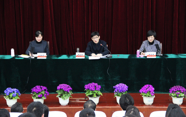 4月7日下午,学校2015-2016学年全体班主任、辅导员会议在稽山校区综合楼报告厅举行。执行校长、党委常务副书记詹文都出席会议并作重要讲话。会议由学校党委副书记施文妹主持,学工部全体成员、各学院副书记、全体班主任、辅导员参加会议。