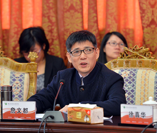 校长徐真华,执行校长、党委常务副书记詹文都,副校长单胜江,以及学校二级教学单位、职能部(处)负责人和相关教师参加报告会。广东外语外贸大学外语研究与语言服务协同创新中心常务副主任李瑞林教授也应邀出席报告会。 徐真华在会上讲话,詹文都主持报告会。