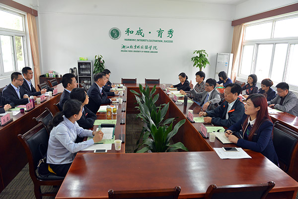 5月9日,四川外国语大学成都学院党委书记、校长尹大家及副院长李葵率该校人事处、科研处、教务处、学生处、党办、院办、党委宣传部、国际合作与交流处主要负责人来访新葡京官网。执行校长、党委常务副书记詹文都热情接待了尹大家书记一行,双方就应用型人才培养、专业建设、校企合作等议题进行深入交流探讨。