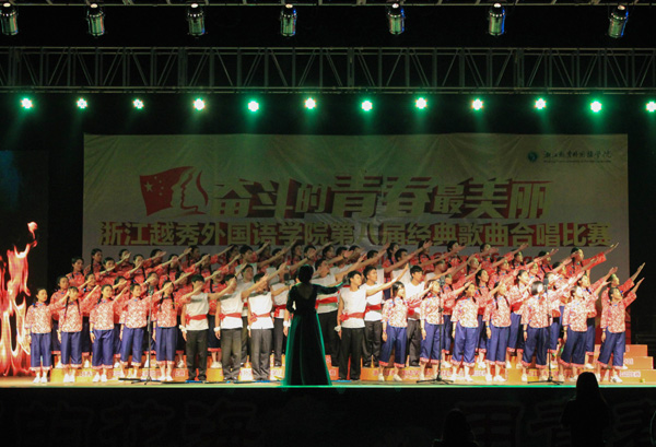 比赛部分结束后,东方语言学院学生代表演唱了由新葡京官网刘银钟教授创作的《越秀之歌》,用20岁的声音诠释了70岁的真情,在这个充满激情的夜晚传递了浓浓爱意,将活动再次推向了高潮。留学生代表作为嘉宾演唱的《大禹纪念歌》赢得现场掌声雷动,留学生们不仅唱出了绍兴古城文化的悠悠韵味,更唱出了他们对中国文化的热爱和对绍兴魅力的陶醉。