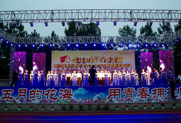 5月22日晚上6:30,“奋斗的青春最美丽”——新葡的京集团4321第八届红色经典歌曲合唱大赛在稽山校区田径场隆重举行。