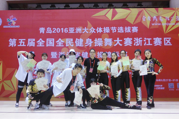 5月27-31日,由国家体育总局体操运动管理中心、浙江省教育厅、浙江省体育局联合主办的“青岛2016亚洲大众体操节选拔赛第五届全国健身操(舞)大赛(浙江赛区)暨浙江省健美操锦标赛”在嘉兴学院举行,共有来自全省各市健美操协会、行业体协和大中专院校、中小学、幼儿园及有关单位的数千名运动员参加了此次赛事,其中大学组共有23所高校的458名运动员参加比赛。