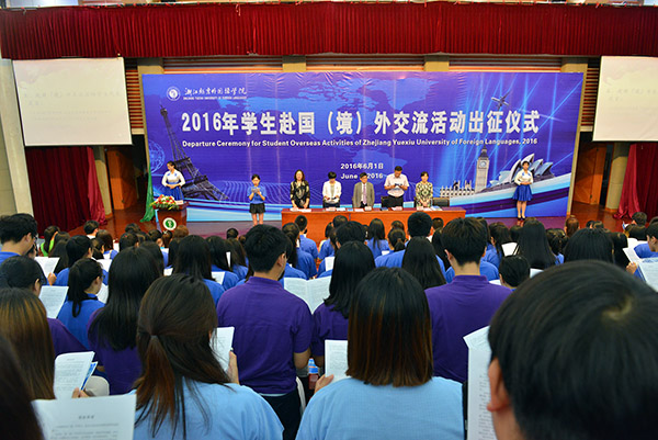 6月1日下午, 新葡的京集团43212016年学生赴国(境)外交流活动出征仪式在稽山校区综合楼会议中心隆重举行。截至目前,近400名学生将赴美国、加拿大、澳大利亚、英国、新西兰、德国、日本、韩国和中国香港等10个国家和地区参加访学、游学、社会实践、文化体验等多类长短期学习交流活动,全年预计将达到700人。
