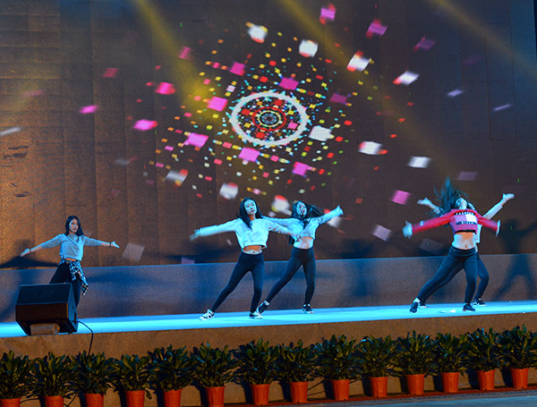 一个个精心编排的节目,伴随着绚丽的灯光和震撼的乐曲,引得观众的呐喊声、鼓掌声交织在一起,一浪高过一浪,晚会现场成了一片万人狂欢的欢乐海洋。