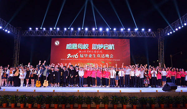 街舞《舞动越秀》、阿卡贝拉《海阔天空》、G20志愿者风采展示《护航G20,青春勇担当》、器乐演奏《会稽山下的日子》、当代舞《蒲公英》、健美操《健美操日记》、诗歌朗诵《再见,母校;你好,人生》、独唱《小幸运》、小组唱《完美音调》、合唱《同桌的你》等10个由师生们自编自导自演的精彩节目,淋漓尽致地展现了2016届毕业生由青涩走向成熟的每一个场景、每一段历程,描绘了他们对母校一草一木的眷恋之情和对大学生活的无限怀念。