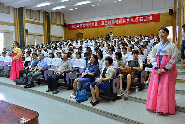 会谈后,韩硕熙还为新葡京官网韩语专业的学生作了题为“培养未来中韩关系所必需的专家”的主题报告。报告中,韩硕熙阐述了他所判断的中韩关系未来发展趋势并指出,虽然目前存在制约两国关系发展的因素,但两国在更多领域有着共同的目标与利益,韩国政府希望与中国开展广泛合作,联手应对挑战,实现互惠共赢。他希望有更多学韩语的中国学生能够成为中韩关系发展的使者,为推动两国关系做出努力。