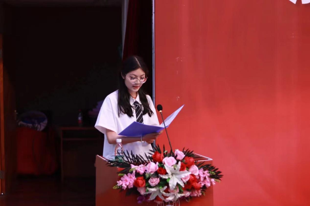 典礼上,21应英6班学生平雯婷作为优秀毕业生代表进行了发言,她对学校和老师表达了感谢,对全体同学发出了美好的祝愿。她说“祝愿即将前往在世界各地的我们,前程似锦,鲜活明亮,祝愿拿到录取通知书的我们怀揣梦想、学业顺利!”