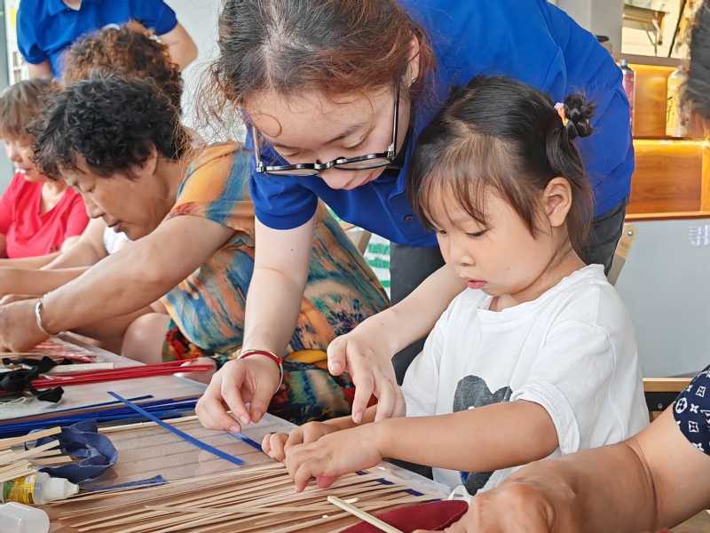 7月11日下午,实践团在小昆村的昆仑之家中开展了非遗竹编体验活动,邀请了15位小昆村村民和游客们亲手制作竹编团扇。同时,实践团在现场进行非遗竹编历史介绍和文化科普,让村民和游客们更好地了解非遗竹编文化,亲身感受到竹编文化的魅力,现场一片欢声笑语。